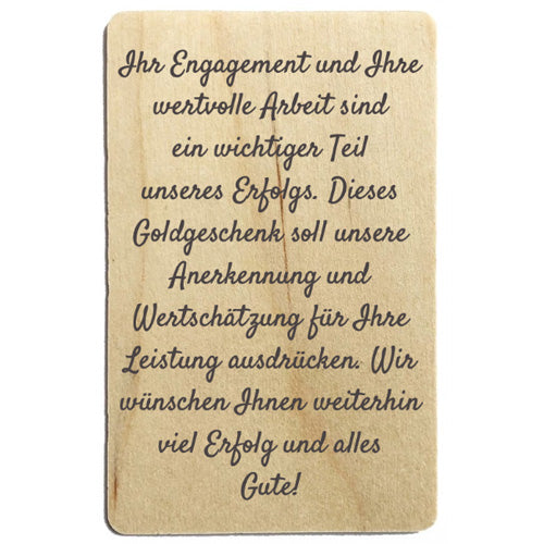 Unsere hochwertigen Goldgeschenke bieten Unternehmen eine einzigartige Möglichkeit, Wertschätzung auszudrücken. Jeder Goldbarren wird in einem eleganten Etui präsentiert und kann mit einer individuellen Grußkarte ergänzt werden – sei es mit einem persönlichen Dankeschön, einer Widmung oder dem Firmenlogo. So entsteht ein exklusives und bleibendes Erinnerungsstück, das Ihre Wertschätzung für die Arbeit und Loyalität Ihrer Mitarbeiter perfekt unterstreicht.
