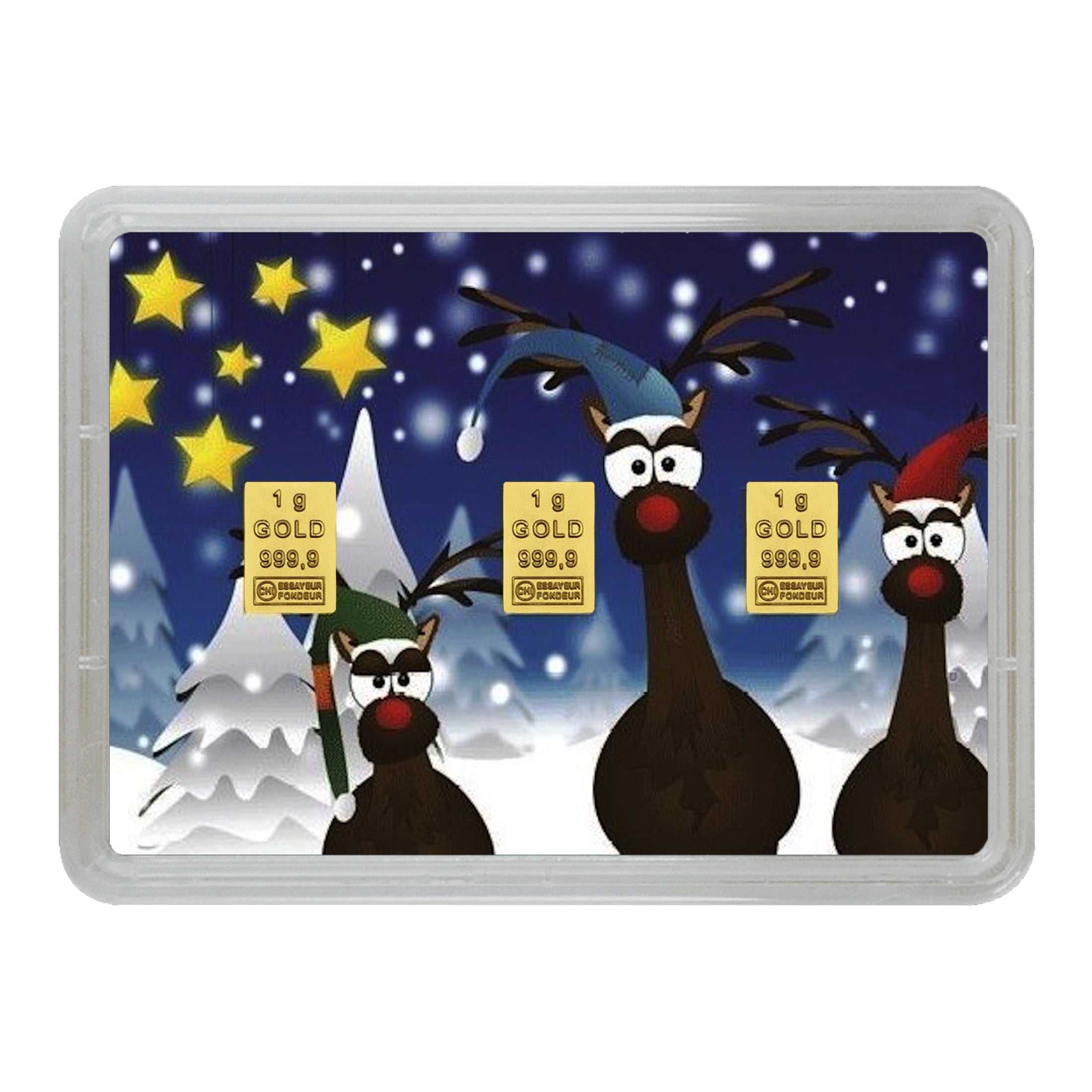Goldbarren mit Flip-Motivbox "Rentiere" Weihnachten